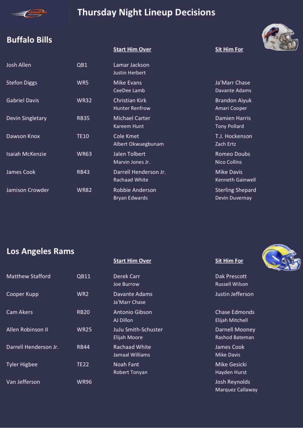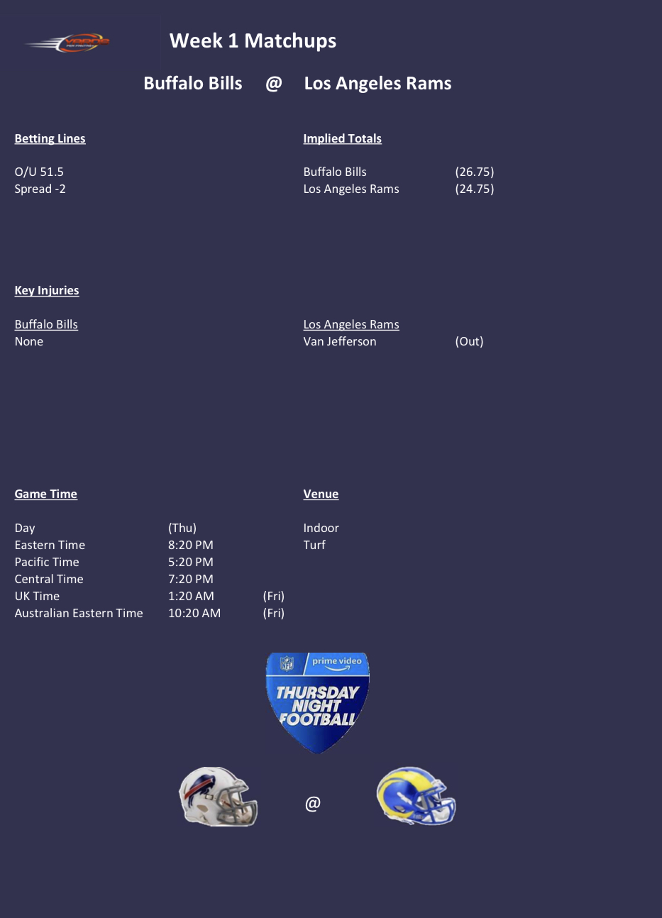 Week 1 Thursday Night Football: BUF v LAR