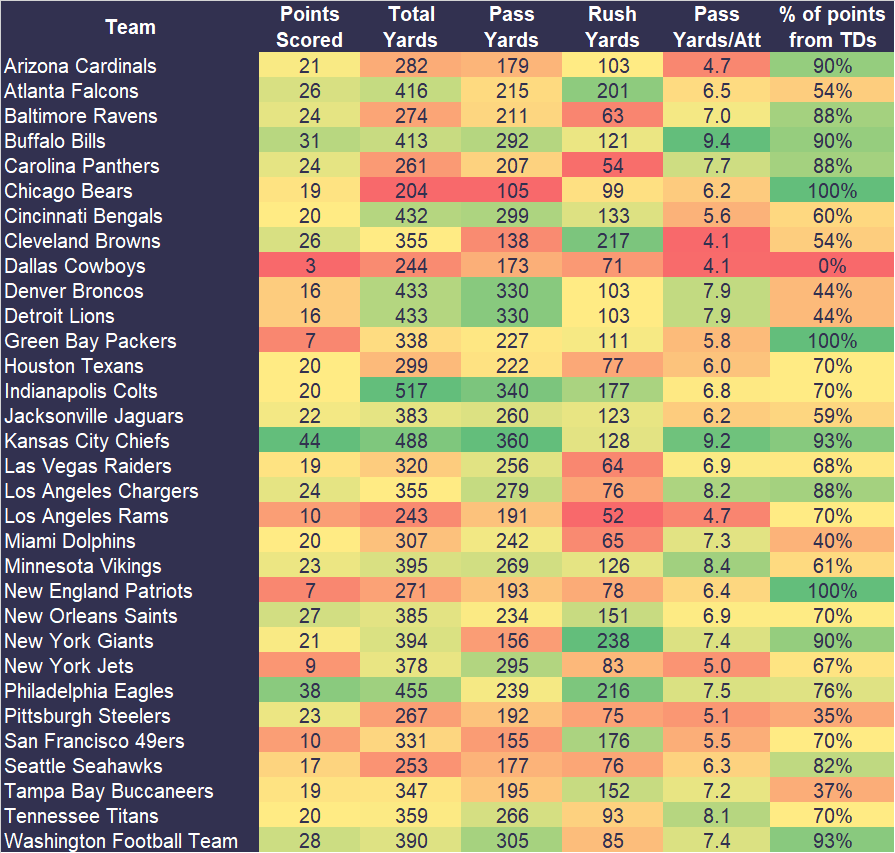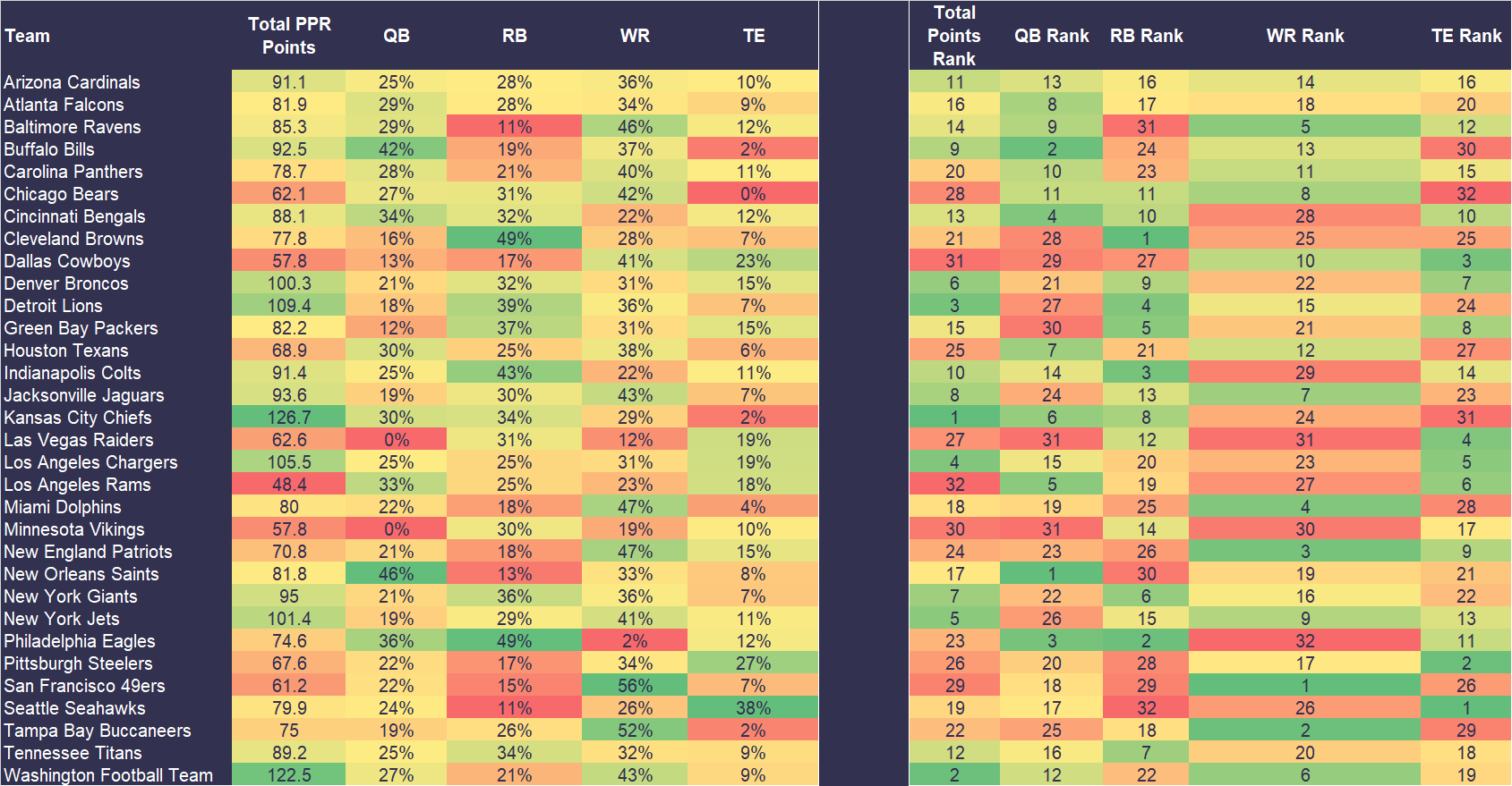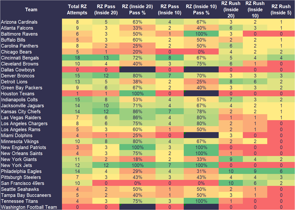 Each week we’re going to lay out the key stats at a team level to help with projecting the teams to buy-in to moving forward. We want players with opportunities to score points so these stats give you everything you need to know about which teams those are.