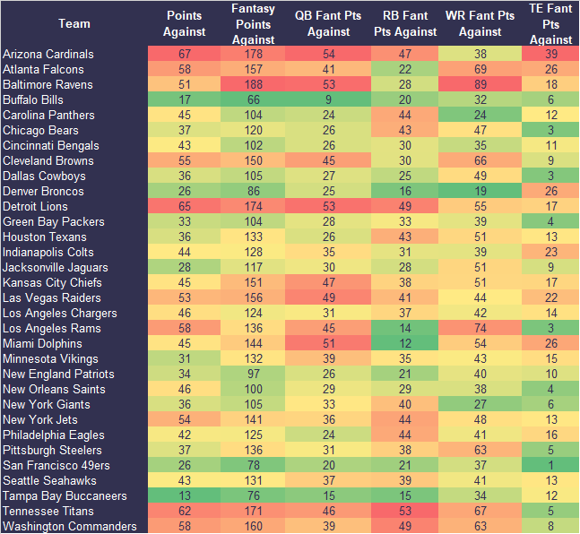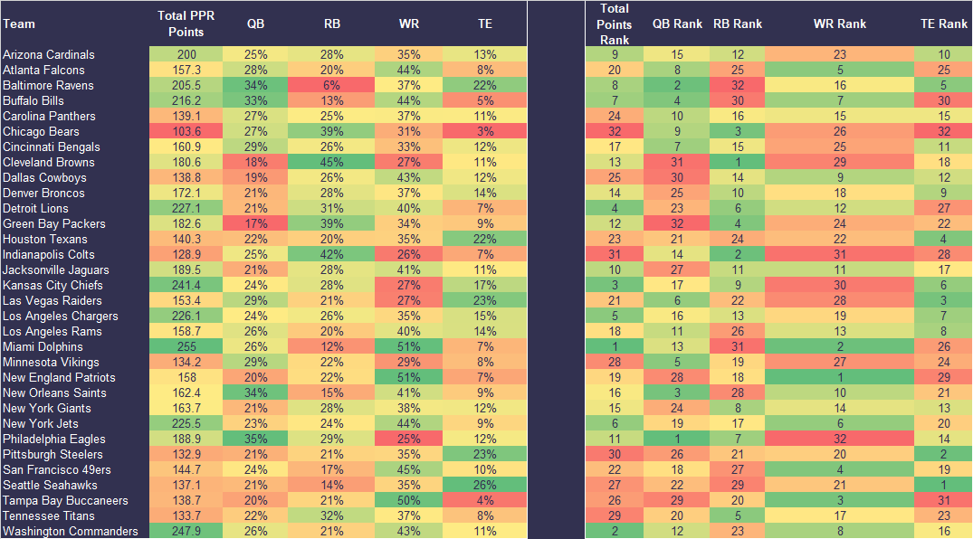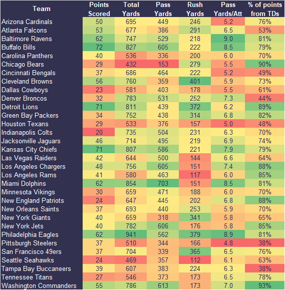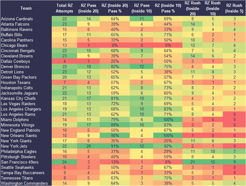 Each week we’re going to lay out the key stats at a team level to help with projecting the teams to buy-in to moving forward. We want players with opportunities to score points so these stats give you everything you need to know about which teams those are.