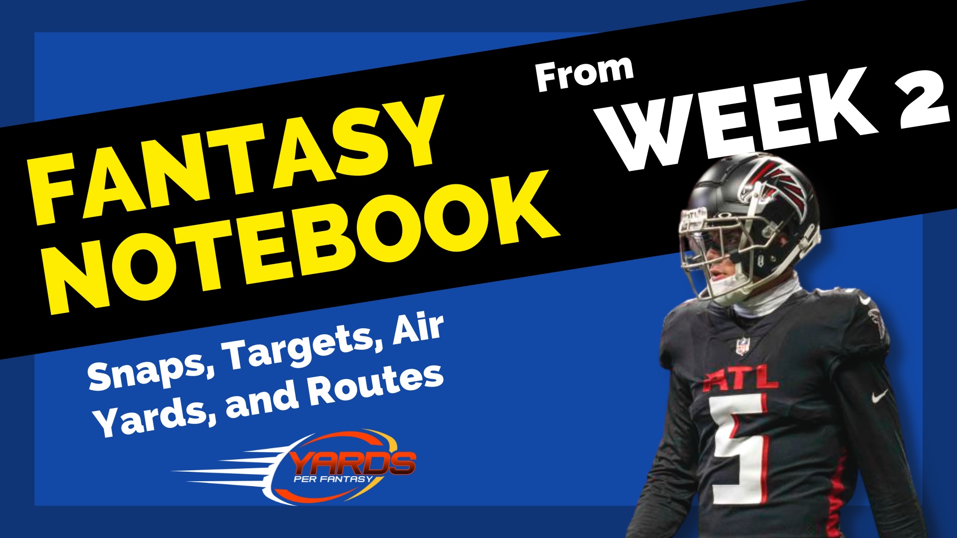 Player Value Fantasy Notebook: Snaps, Targets, Air Yards, & Routes From Week 2 September 20, 2022 Week 2 Route participation, air yards, snaps, & targets data to help identify fantasy football trends as we head into Week 3. Helpful in...