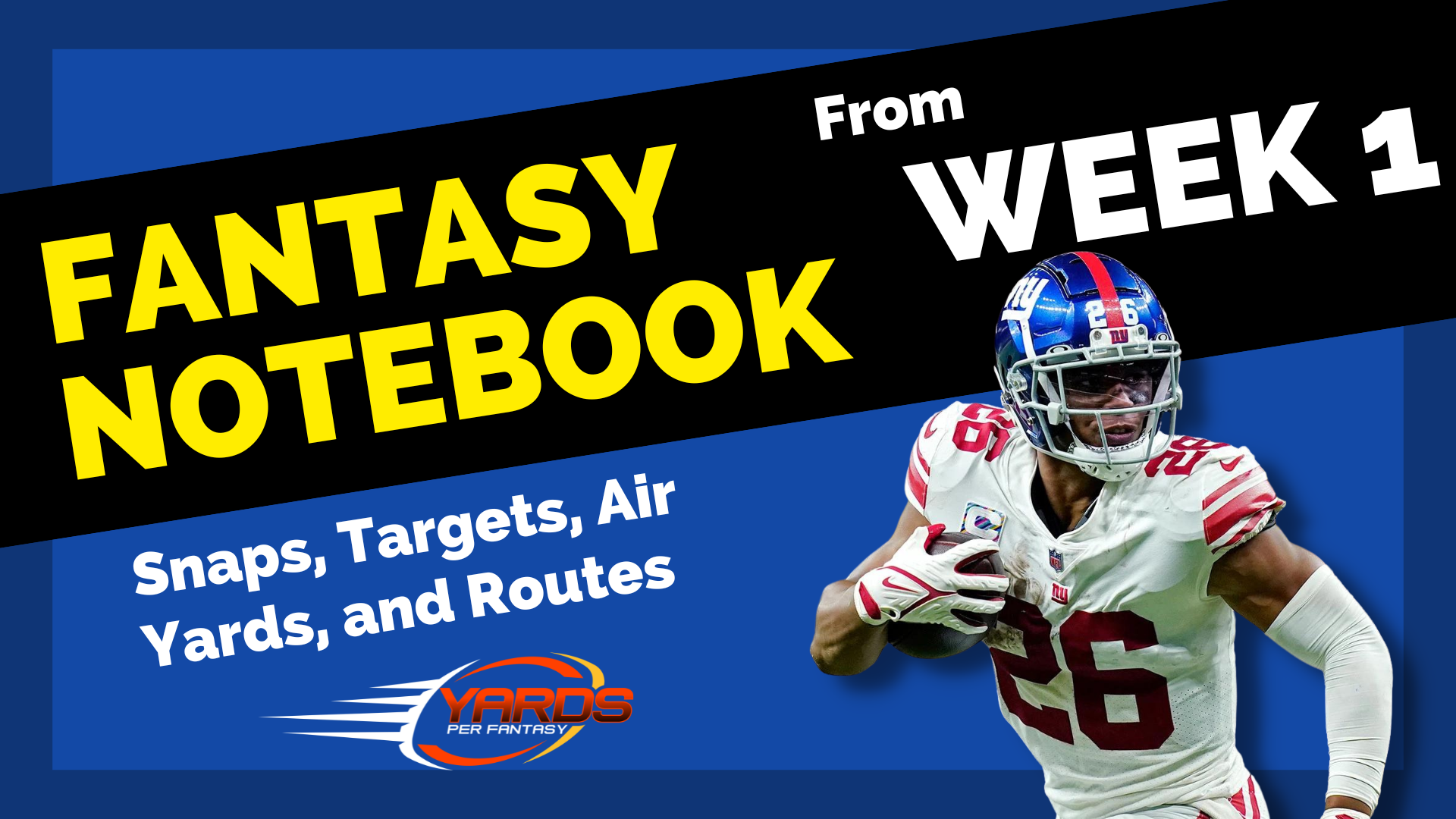 Player Value Fantasy Notebook: Snaps, Targets, Air Yards, & Routes From Week 1 September 13, 2022 Week 1 Route participation, air yards, snaps, & targets data to help identify fantasy football trends as we head into Week 2. Helpful in...