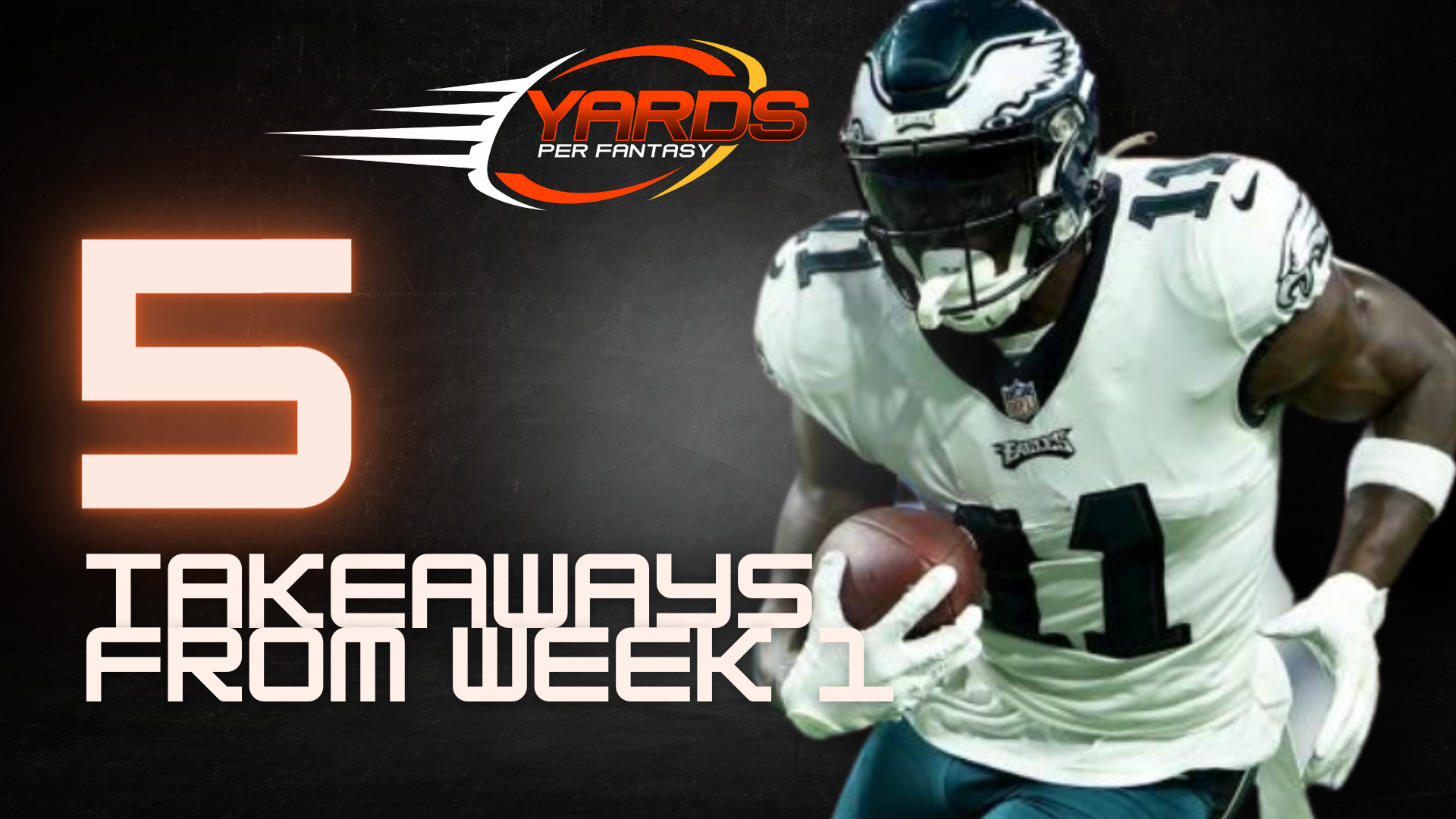 Player Value 5 Takeaways from Week 1 September 13, 2022 Top-5 Week 1 Takeaways. Dennis looks back at a thrilling week of football. What did we learn? How should we react?...