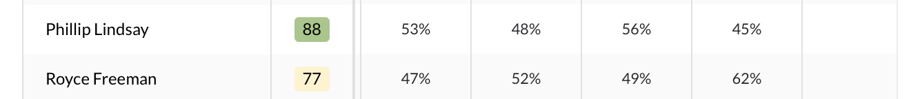- Phillip Lindsay and Royce Freeman have alternated the majority snap share every week. This week was Freeman’s turn.
