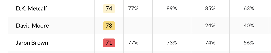 - With David Moore healthy and back in the mix, both D.K. Metcalf and Jaron Brown took big hits to their snap rates in Week 4.