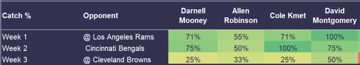 Those catch percentages are not good from Justin Fields debut. Lets hope he manages to get on the same page as his receivers next time he gets out there.